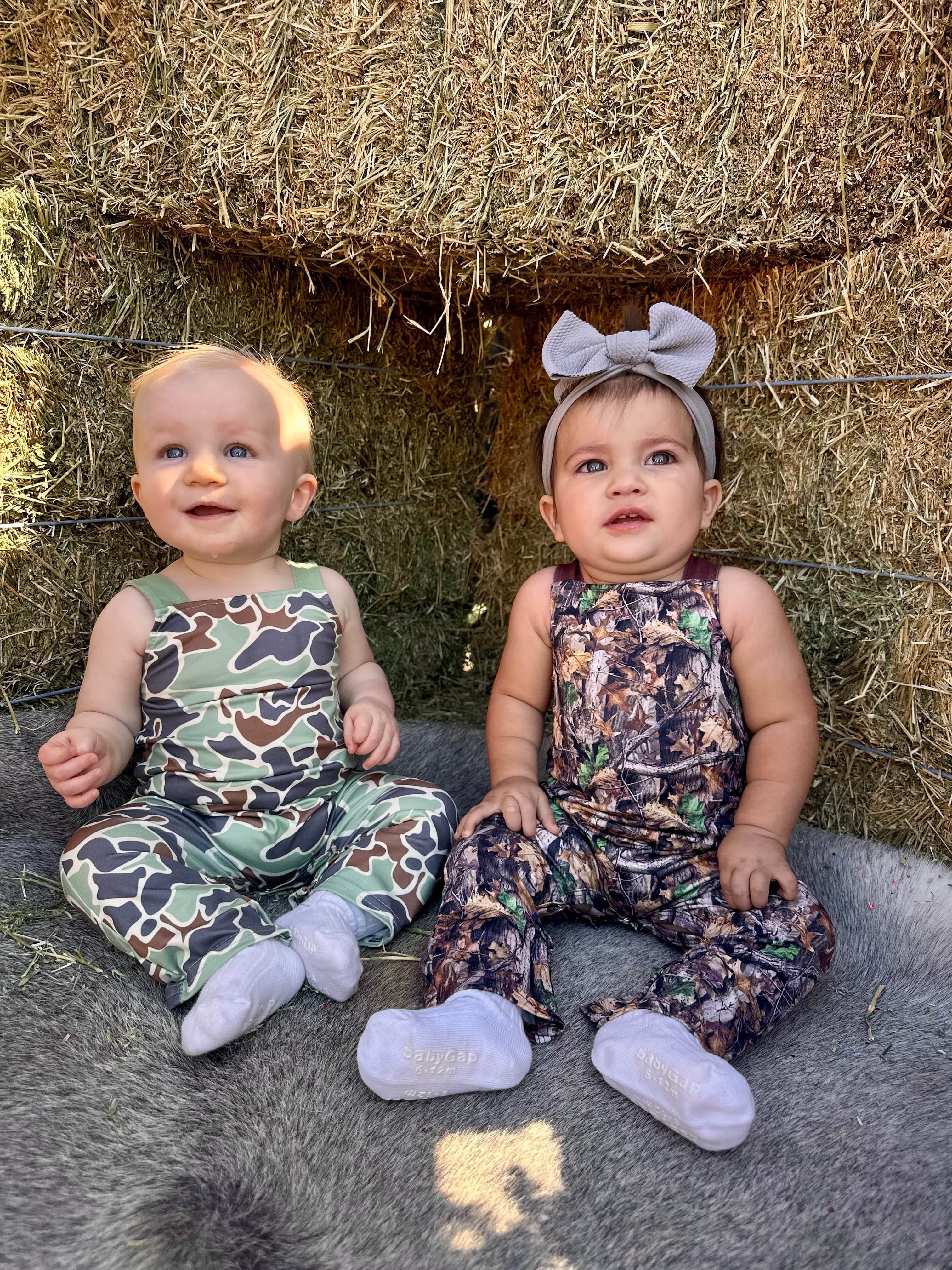 Dress your little outdoorsman in comfort and camo with our Baby RealTree Camo Overalls! Crafted from soft, breathable cotton, these overalls feature an authentic RealTree pattern with rich earth tones and natural textures. The stretchy, lightweight material makes it perfect for all-day wear, whether it’s a trip to the farm or lounging at home. Easy to layer and made for adventure!