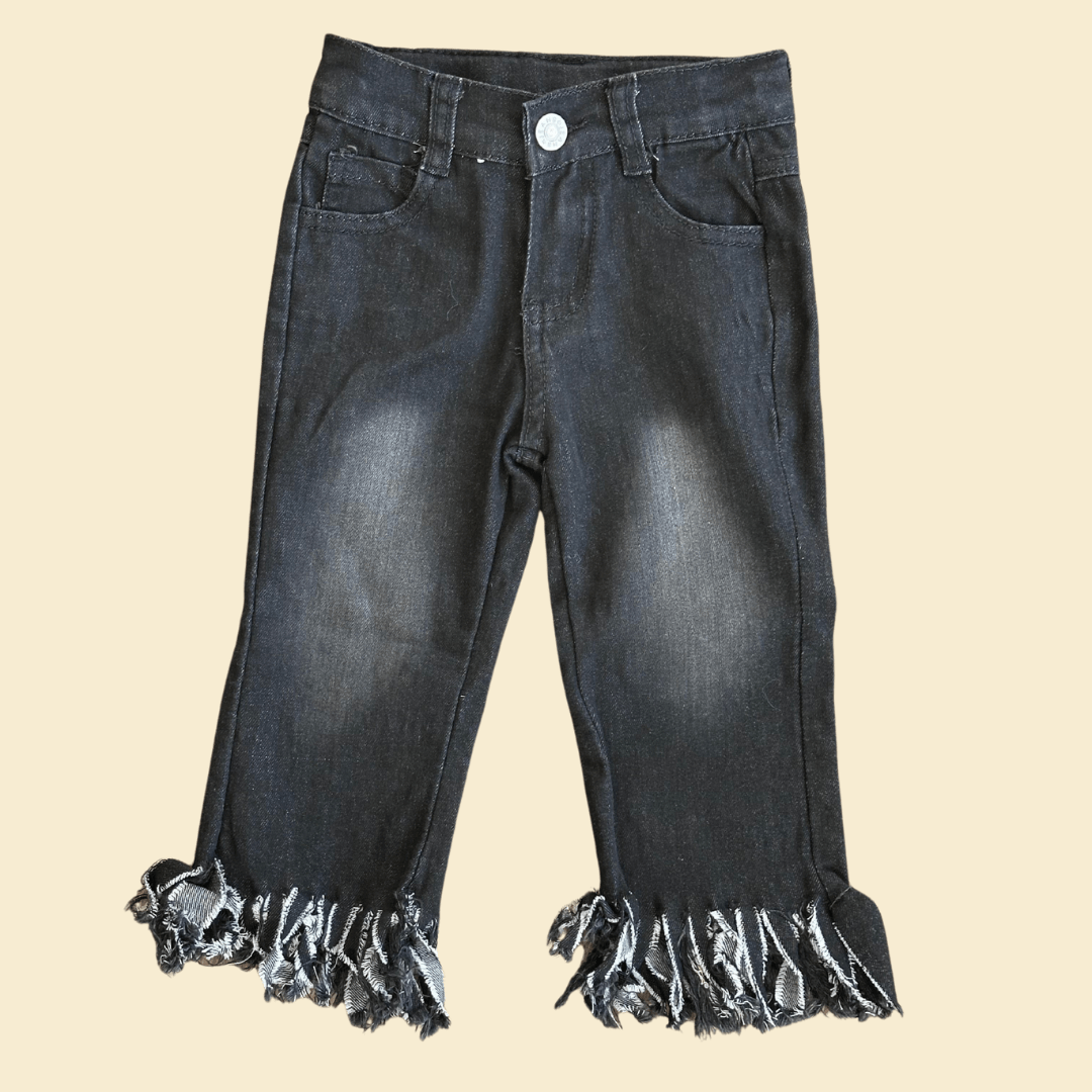 Add a little edge to your cowgirl’s closet with our Black Fringe Jeans! Featuring soft stretch denim and bold black fringe down the legs, these jeans are made for strutting, stomping, and stealing the show. Perfect for rodeo nights, concerts, or everyday sass with a western twist.