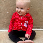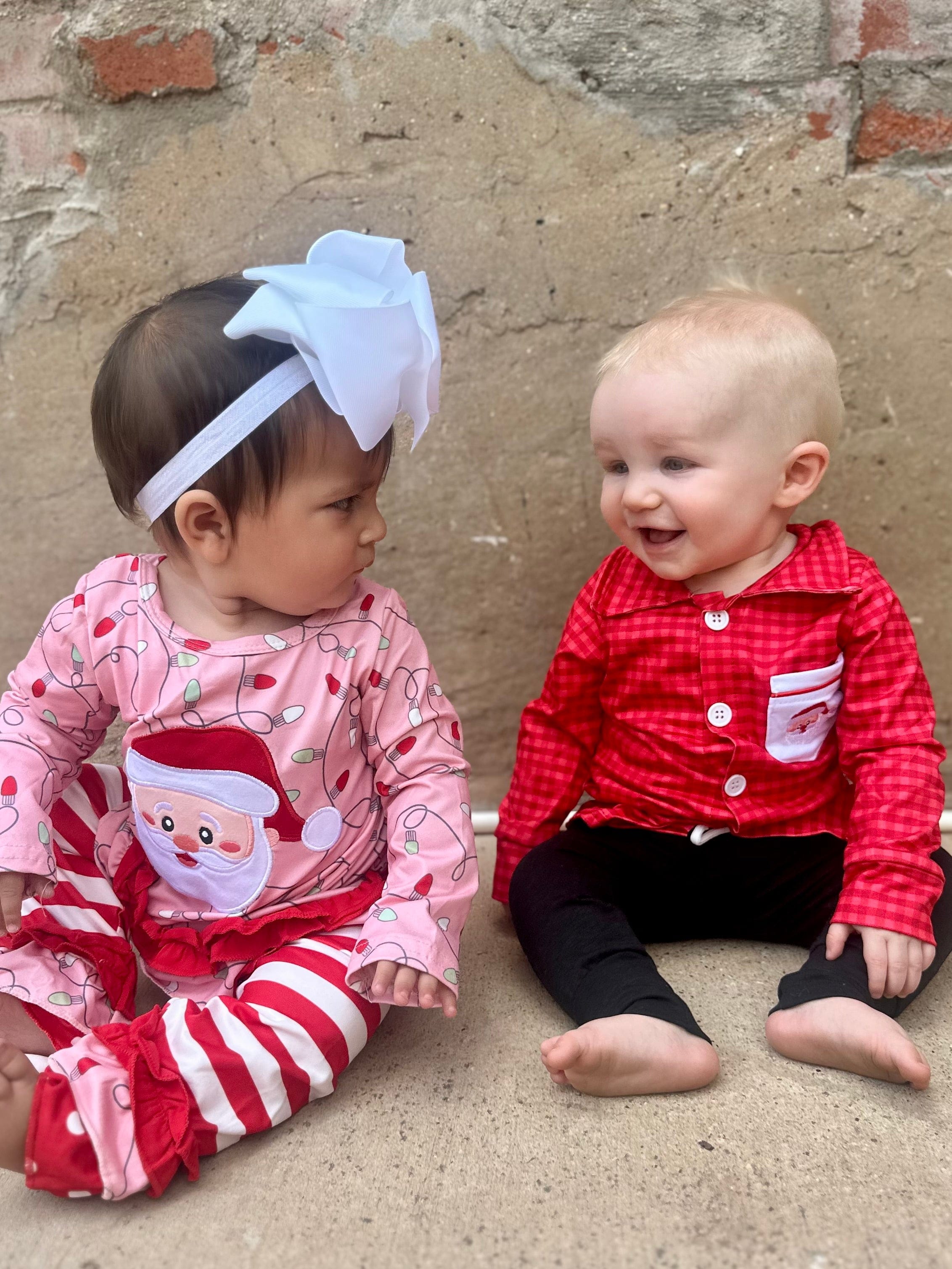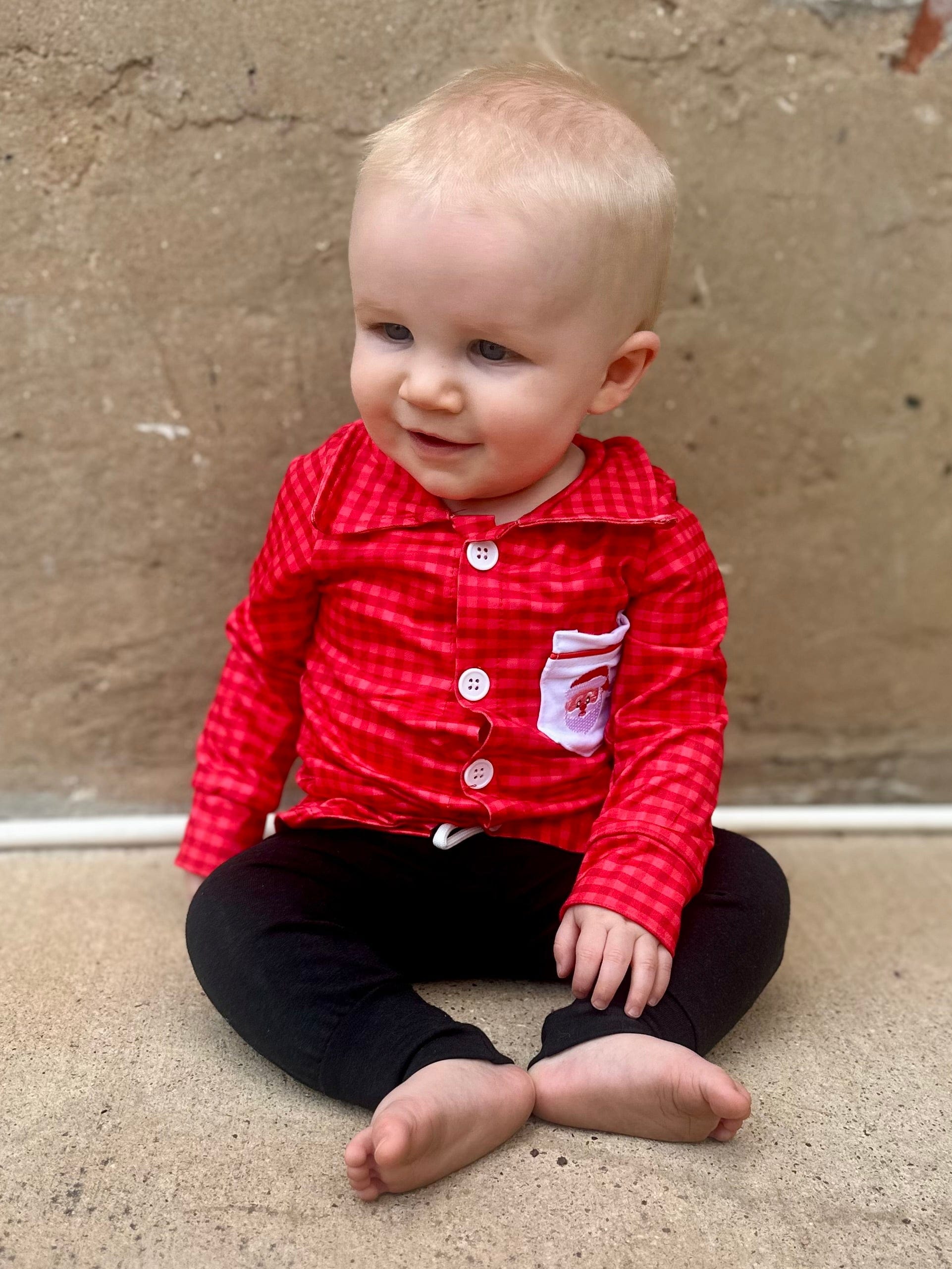 Dress him up in festive charm with our Jolly Gingham Santa Button Down! This classic red gingham shirt features long sleeves, button-up front, and a cheerful Santa patch on the chest pocket. Perfect for Christmas parties, family photos, and holiday dinners—it's a must-have for your little guy's seasonal wardrobe.
