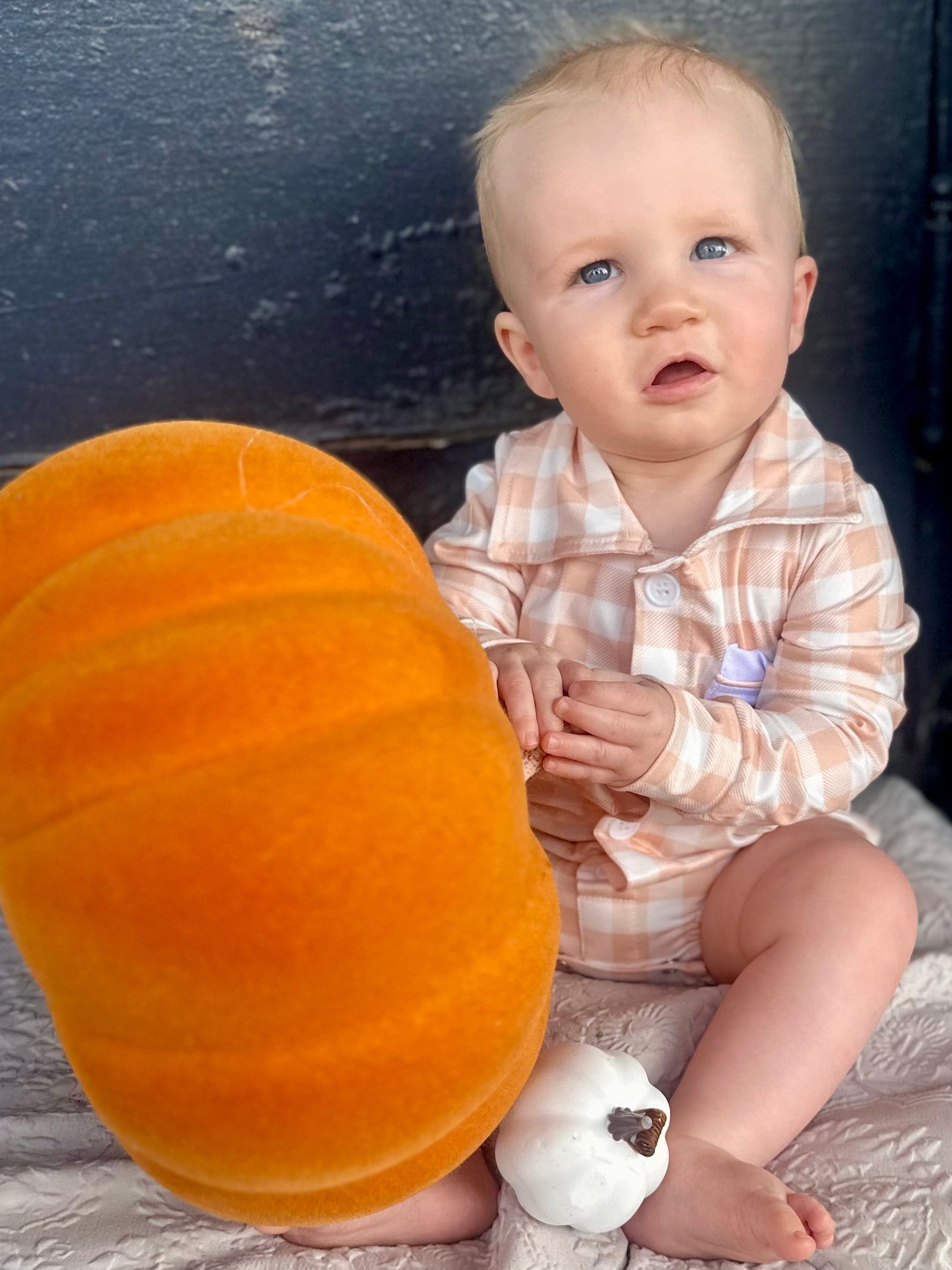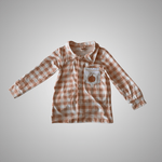 Get your little ones fall-ready with our Pumpkin Patch Button Down Shirt! Featuring a classic beige gingham print and a cute pumpkin pocket detail, this shirt is available as a bodysuit for babies and a traditional button-down for toddlers and big kids. Perfect for coordinating sibling outfits, pumpkin patch photos, and Thanksgiving gatherings!